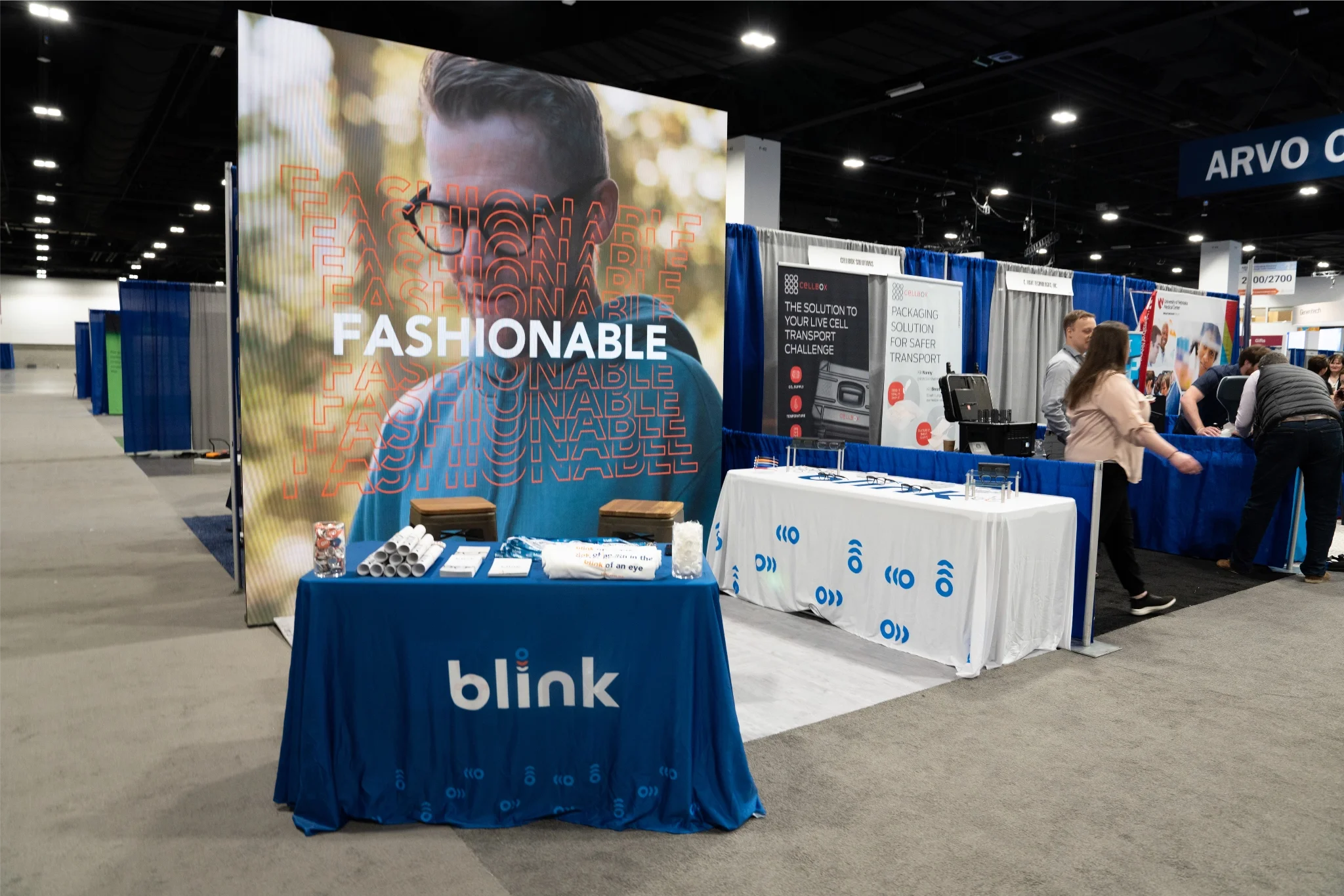 We took raising brand awareness to the next level and joined the Blink team in Denver for the ARVO 2022 Conference and had a blast! We constructed an epic booth design featuring a 10 ft LED wall screen looping a video created to showcase the product and its features, a swag table full of branded items and take away pieces, and a product display table for those to learn and try on Blink’s new revolutionary product.