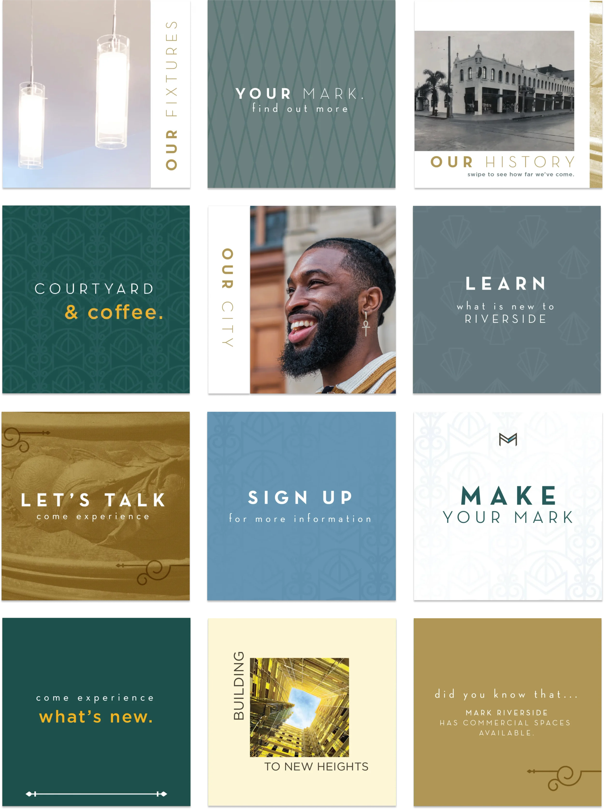 As a focal point of the Riverside cityscape, we wanted to establish the Mark as a source of information and excitement on all social channels. The content and experience provided by social media content would enable non-residents to follow for localized information and events as they aspired to be a part of the Mark.